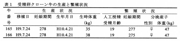| [成果情報名] | ホルスタイン種受精卵クローン牛(一卵性双子)の発育泌乳成績 |