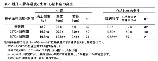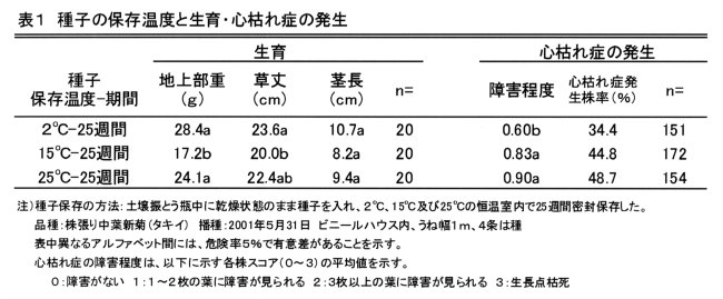 | [成果情報名] | シュンギク種子低温保存による心枯れ症の低減技術 |