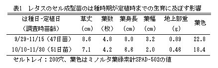 | [成果情報名] | 積雪地帯におけるレタスセル成型苗秋定植および越冬セル苗早春定植栽培 |