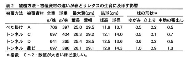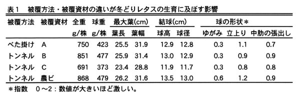 | [キーワード] | レタス、トンネル、べた掛け、通気性、被覆資材 |