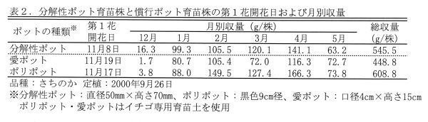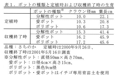 | [成果情報名] | 分解性ポット利用によるイチゴの省力育苗法 |