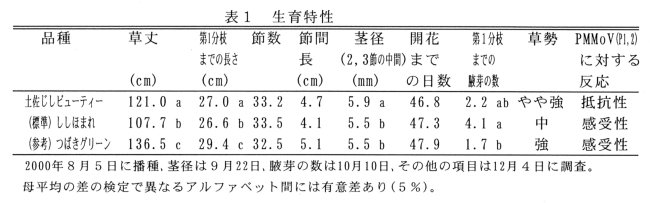 | [成果情報名] | PMMoV(P1,2)モザイク病抵抗性シシトウ「土佐じしビューティー」の育成 |