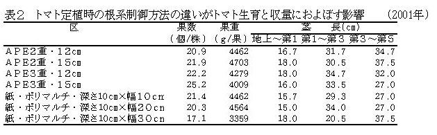 | [成果情報名] | 生分解性資材を利用した夏秋トマトの生育制御法 |