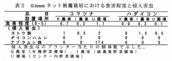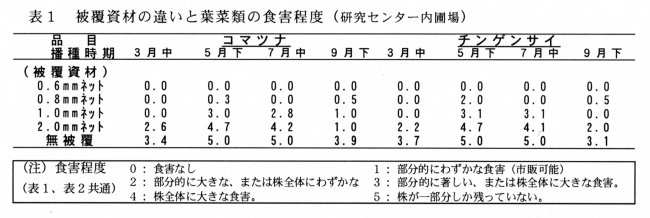 | [成果情報名] | 防虫ネットによる葉菜類の食害軽減 |