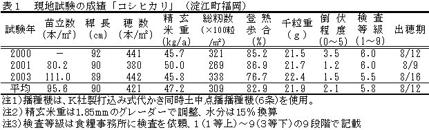 | [成果情報名] | 鳥取県における「コシヒカリ」の打ち込み点播栽培技術 |