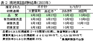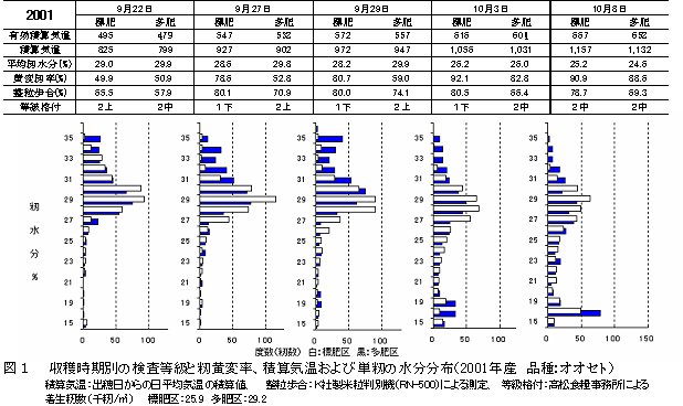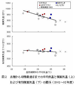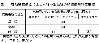 | [成果情報名] | 有効積算気温による水稲中生品種の玄米品質確保のための収穫適期判定法 |