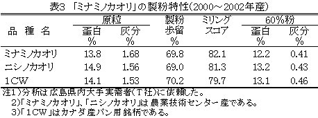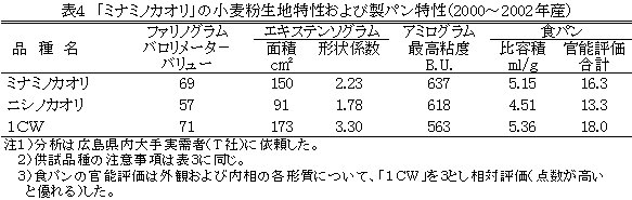 | [成果情報名] | パン用小麦「ミナミノカオリ」の準奨励品種採用 |