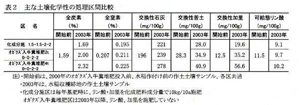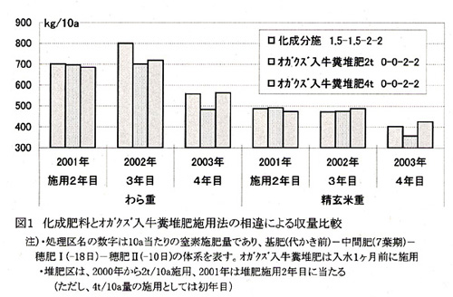 | [成果情報名] | 打ち込み土中点播栽培におけるオガクズ入牛糞堆肥の化成肥料代替効果 |