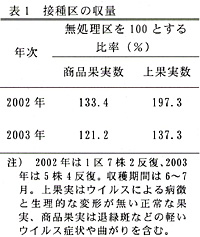 | 発表論文等 | : | 1)小坂ら(2003)日植病報69:320. 2)弱毒ズッキーニ黄斑モザイクウイルスを用いたウリ科作物ウイルス病の防除方法(特願2003-54736). |