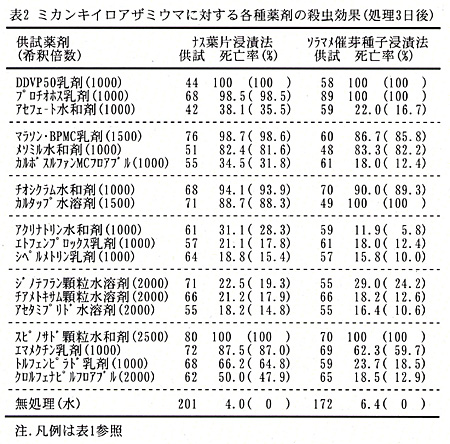 | [成果情報名] | ソラマメ催芽種子浸漬法によるアザミウマ類の薬剤殺虫効果の簡易把握 |