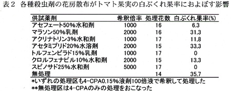| [成果情報名] | 殺虫剤の花房散布によるトマト果実の白ぶくれ症状抑制 |