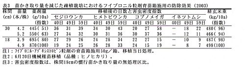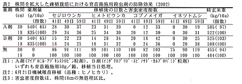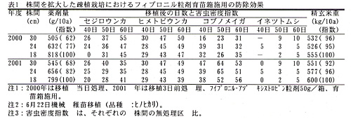 | [成果情報名] | 水稲の疎植栽培における育苗箱施用殺虫剤の効果 |