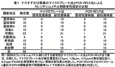 | [要約] | ナスすすかび病菌のクレソキシムメチル剤に対する感受性は、病斑から直接採取調整した胞子懸濁液と薬液をマイクロプレート内で混合し、菌糸伸長50%生育阻害率により検定することができる。 |