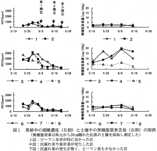 | [成果情報名] | トマト養液土耕栽培で初期の葉柄中硝酸濃度が果実品質に及ぼす影響 |