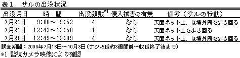 | [キーワード] | 獣害、サル、ネット、防護柵、果樹 |