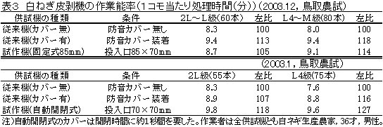 | [成果情報名] | 低騒音白ネギ皮剥機 |