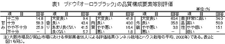 | [成果情報名] | 市場評価からみたブドウ新品種「オーロラブラック」の技術改善方向 |