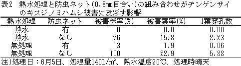 | [成果情報名] | 熱水土壌処理と防虫ネットを組み合わせた安心安全な軟弱野菜生産 |