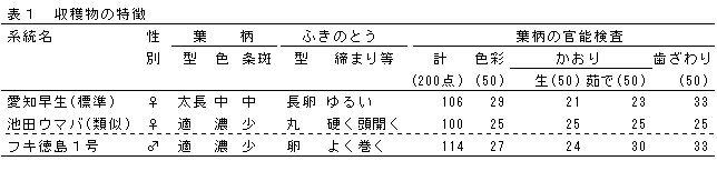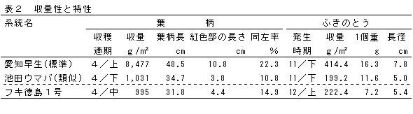 | [成果情報名] | 高品質早生系のフキ新品種「フキ徳島1号」 |