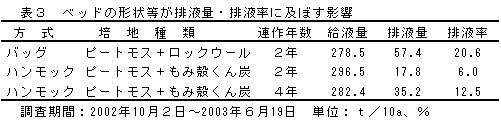 | [要約] | 「香川型イチゴ高設・バッグ式養液栽培」のベッドをハンモック式に改造し、ピートモスともみ殻くん炭を混合した有機質培地を用いると、少なくとも4年の連作が可能である。ロックウールを使用せず、排液量が少ないことから、環境への負荷が小さい。 |