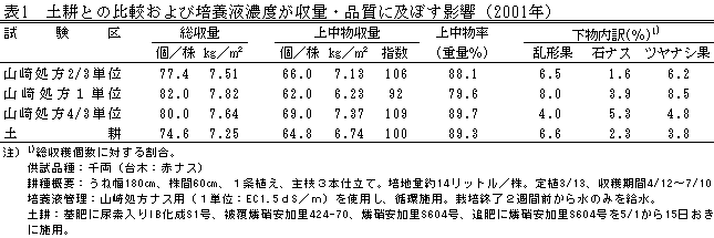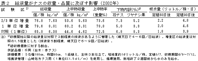 | [成果情報名] | 半促成ナスの少量土壌培地耕における養水分管理技術 |