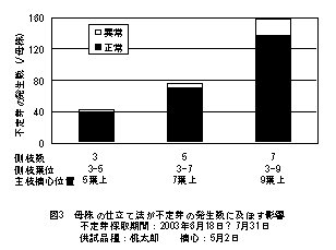 | [要約] | 生長点全摘心不定芽発生法を用いてトマトの栄養繁殖苗を増殖する場合、高温期には低葉位で主枝摘心を行い総側枝数を5以下に制限し、他の時期にはこれより側枝数を増やすことで増殖効率が向上する。栄養繁殖苗と実生苗の間には形質・収量において大きな差は認められない。 |