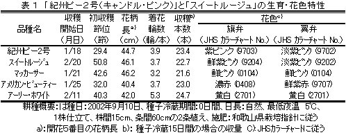 | [成果情報名] | スイートピー新品種「紀州ピー2号」及び「スイートルージュ」の育成 |