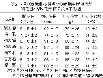 | [成果情報名] | 7月咲き無側枝性ギクの暗期中断処理による省力化と盆出荷 |