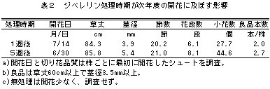 | [成果情報名] | リンドウの6月定植作型におけるジベレリン処理時期 |