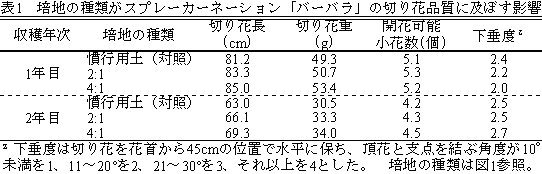 | [成果情報名] | パーライト・ピートモス混合培地によるスプレーカーネーションの養液栽培 |