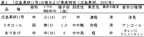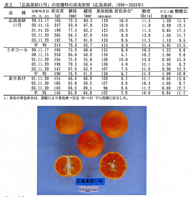 | [成果情報名] | 11月に成熟する減酸の早いカンキツ交雑品種「広島果研11号」の育成 |