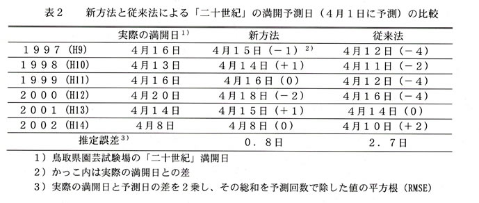 | [要約] | 発育速度モデルによる新しい開花予測法は、従来の鳥取県における開花予測法より高い精度で「二十世紀」の満開日を予測できる。 |