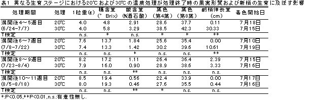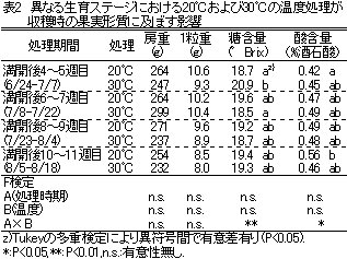| [成果情報名] | 各生育ステージの温度処理がブドウ「安芸クイーン」の着色に与える影響 |