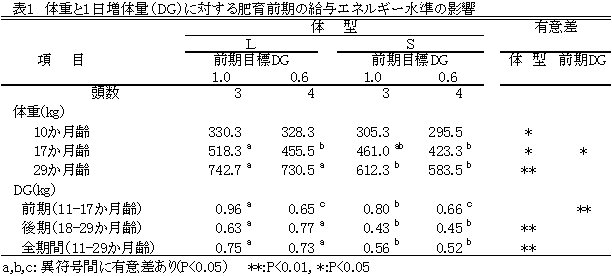 | [成果情報名] | 肥育前期の給与エネルギー水準が黒毛和種去勢牛の産肉性に及ぼす影響 |