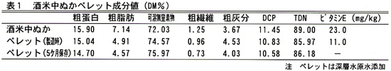 酒米中ぬかを造粒機を用いてペレット化することにより保存性及び採食性が改善された。調製に要するコストは、1kg当たり46.3円であった。 |
