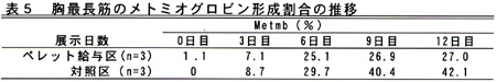 - 本飼料を給与することで、胸最長筋のメトミオグロビン形成割合を抑制(肉色の維持)する可能性がある(表5)。