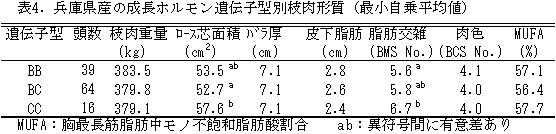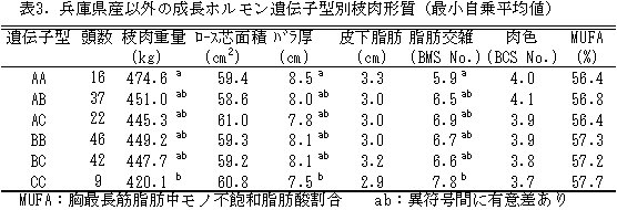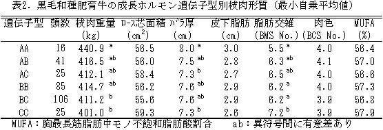 | [成果情報名] | 黒毛和種肥育牛における成長ホルモン遺伝子多型と産肉性との関連 |