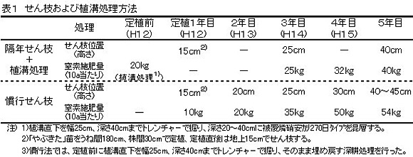 | [要約] | チャ苗定植前に被覆肥料の植溝処理を行い、定植から4年間は3年目のみせん枝を実施することで根系の深層部への拡大が図れ、施肥窒素の利用率が向上する。 |