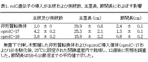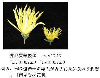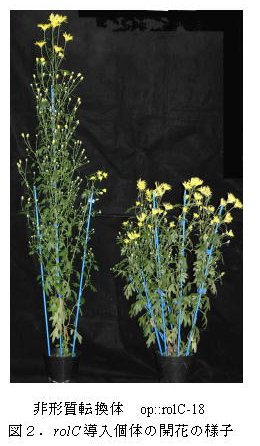 | [成果情報名] | rolC遺伝子導入による嵯峨ギクの草姿の改変 |