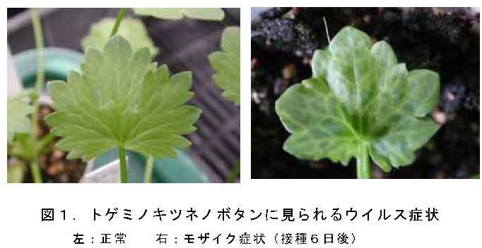 | [キーワード] | ラナンキュラス、ラナンキュラスモットルウイルス、生物検定、トゲミノキツネノボタン、試験管内幼植物 |