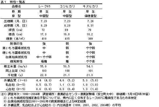 | [キーワード] | イネ、レーク65、早生、良食味、良質 |