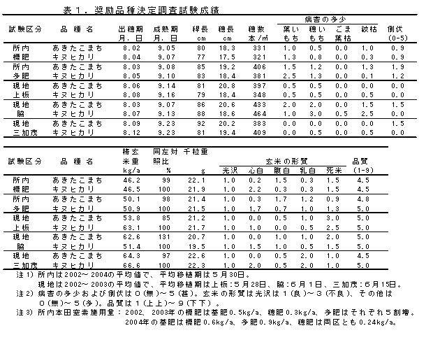 | [キーワード] | イネ、奨励品種、あきたこまち、穂発芽、食味、心白粒 |
