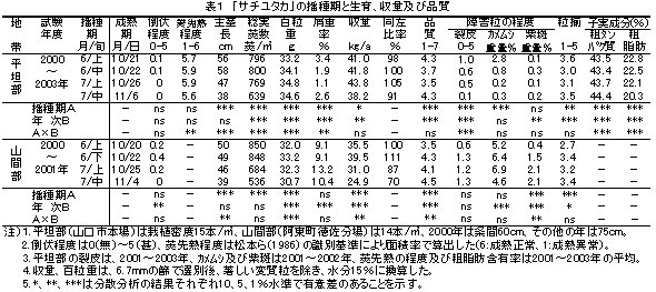 | [担当] | 山口県農業試験場・栽培技術部・作物栽培グループ |