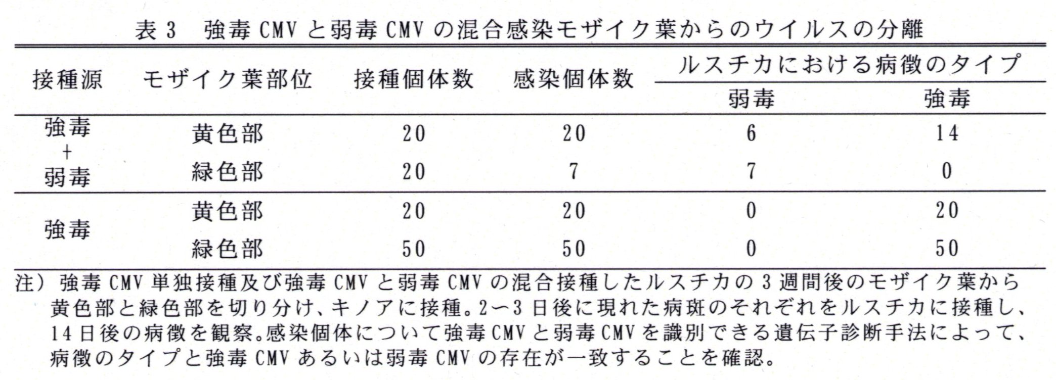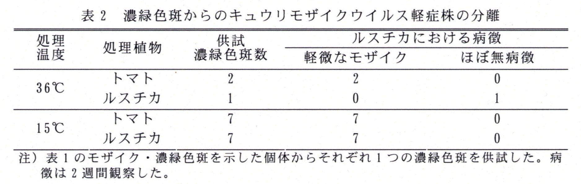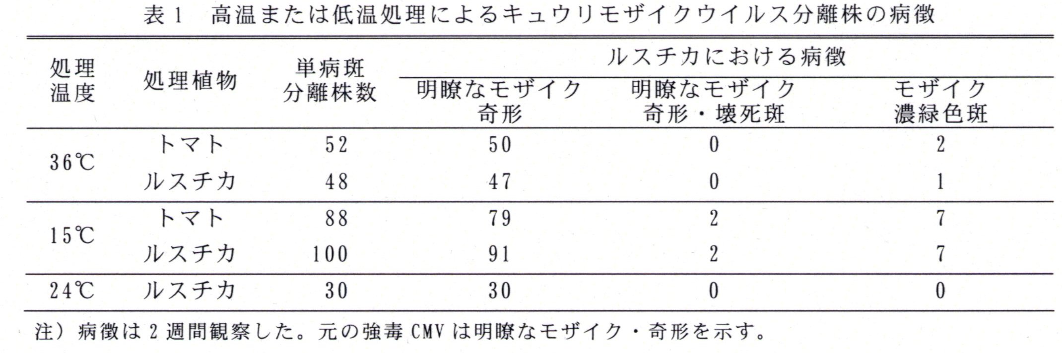 | [成果情報名] | 弱毒キュウリモザイクウイルスの効率的選抜法の開発 |