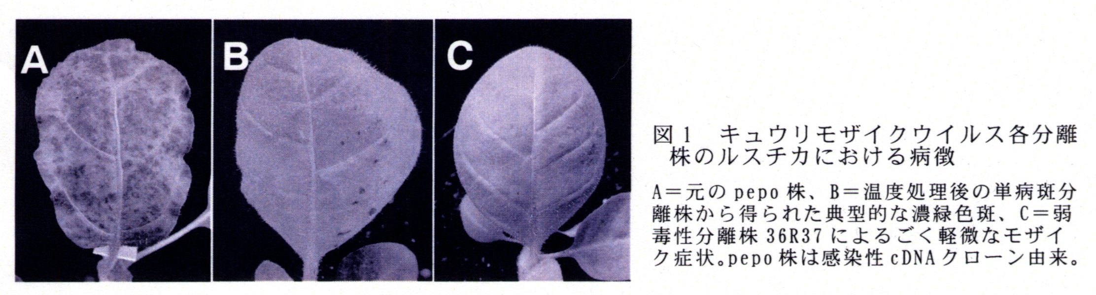 | [キーワード] | 弱毒ウイルス、選抜法、キュウリモザイクウイルス、濃緑色斑、Nicotiana rustica |