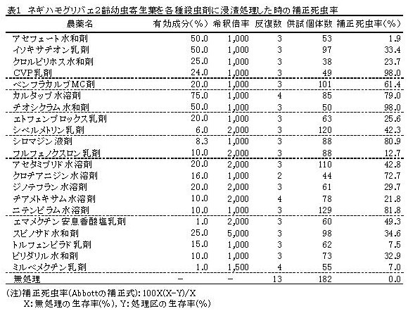 | [成果情報名] | ネギ葉身部浸漬法によるネギハモグリバエの殺虫剤感受性検定法 |