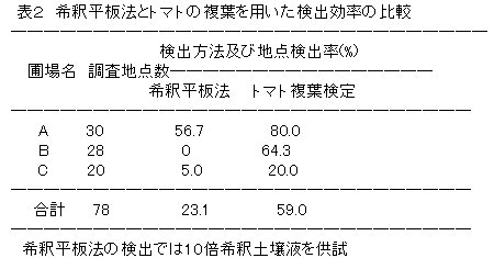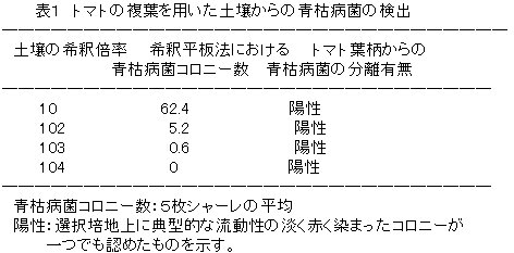 | [成果情報名] | トマトの複葉を用いた増菌法による汚染土壌からの青枯病菌の検出法 |