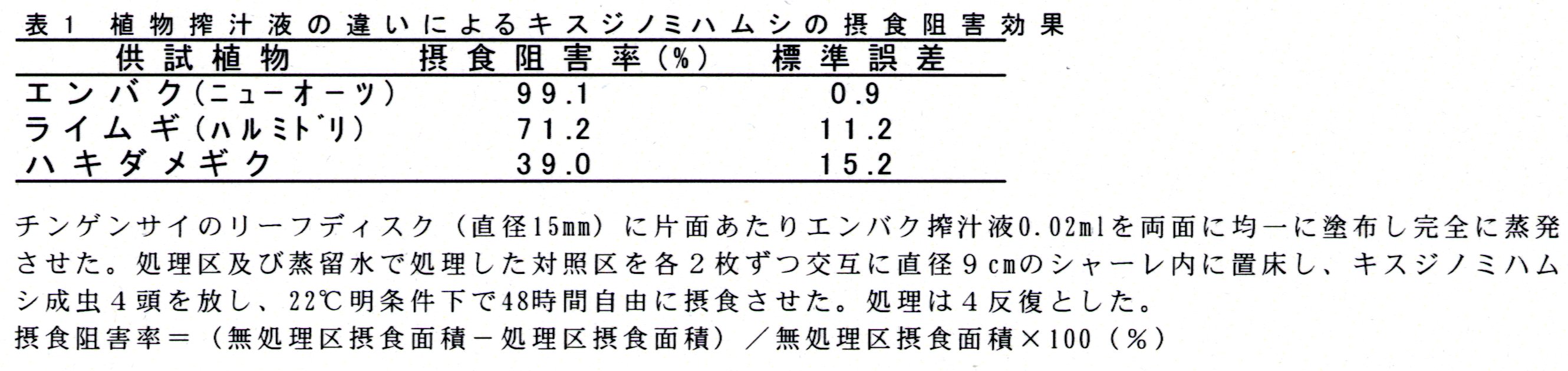 | [成果情報名] | エンバク搾汁液のキスジノミハムシ成虫に対する摂食阻害効果 |