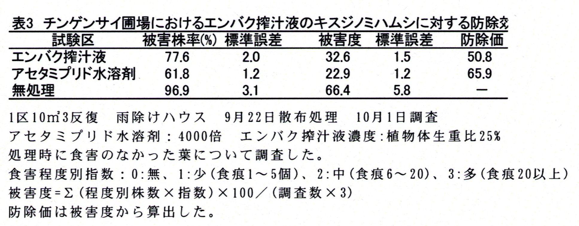 | 発表論文等 | : | 中野(2003)関西病虫研報45:51 特許出願中「害虫忌避剤及び害虫の被害を低減する栽培方法」特願2004-269678 |