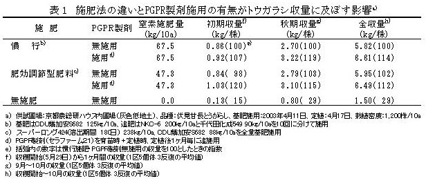 | [成果情報名] | PGPR製剤と肥効調節型肥料を利用したトウガラシの減肥料・増収技術 |